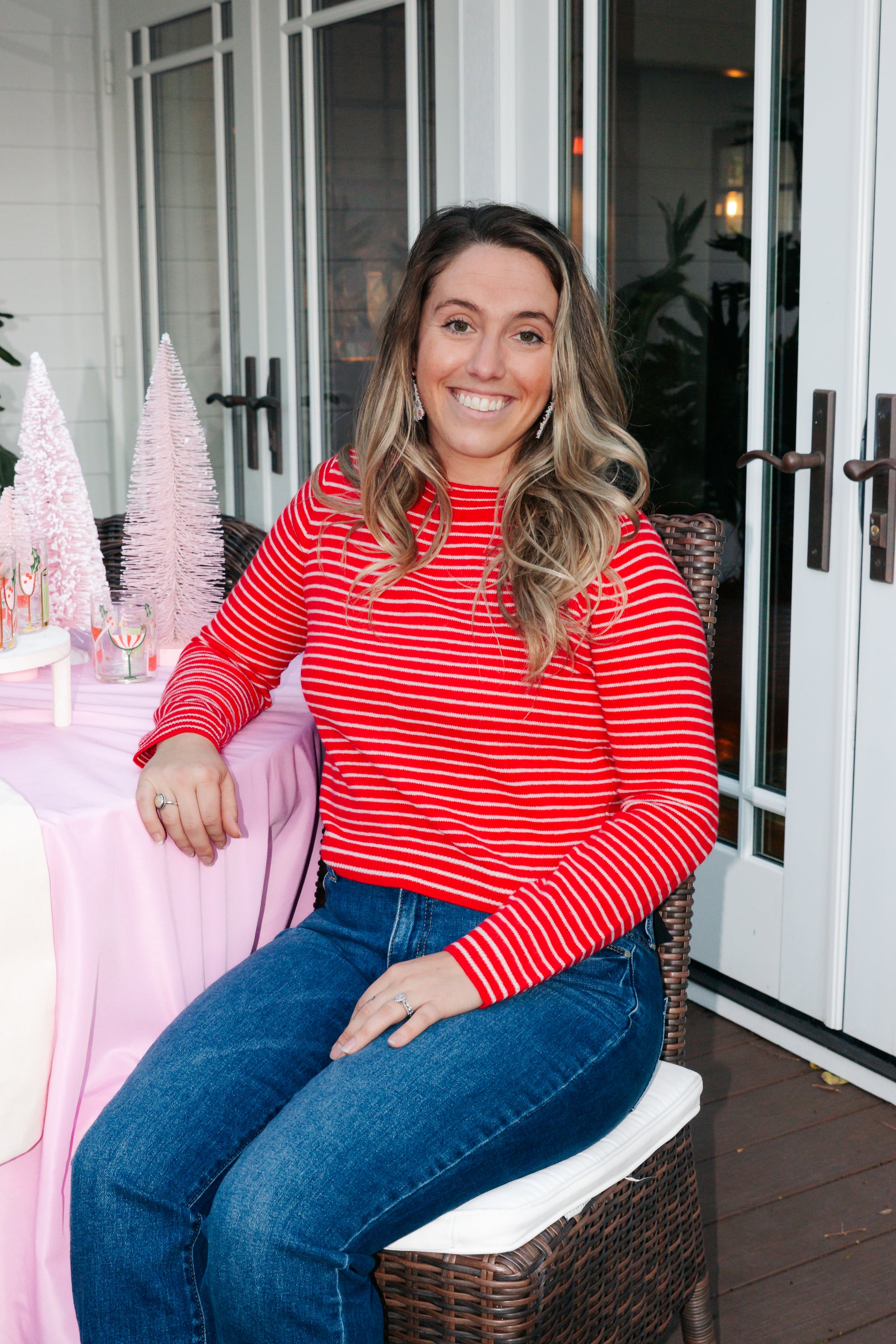 This sweater showcases classic red and white horizontal stripes, embodying a festive spirit perfect for the holiday season. The mock neckline adds a touch of sophistication, making it a versatile piece for both casual and more formal occasions. Crafted from luxuriously soft sweater material, it provides cozy warmth and comfort throughout chilly winter days. Whether layered under a vest or jacket or worn on its own, this sweater is an ideal choice for adding festive flair to any look.