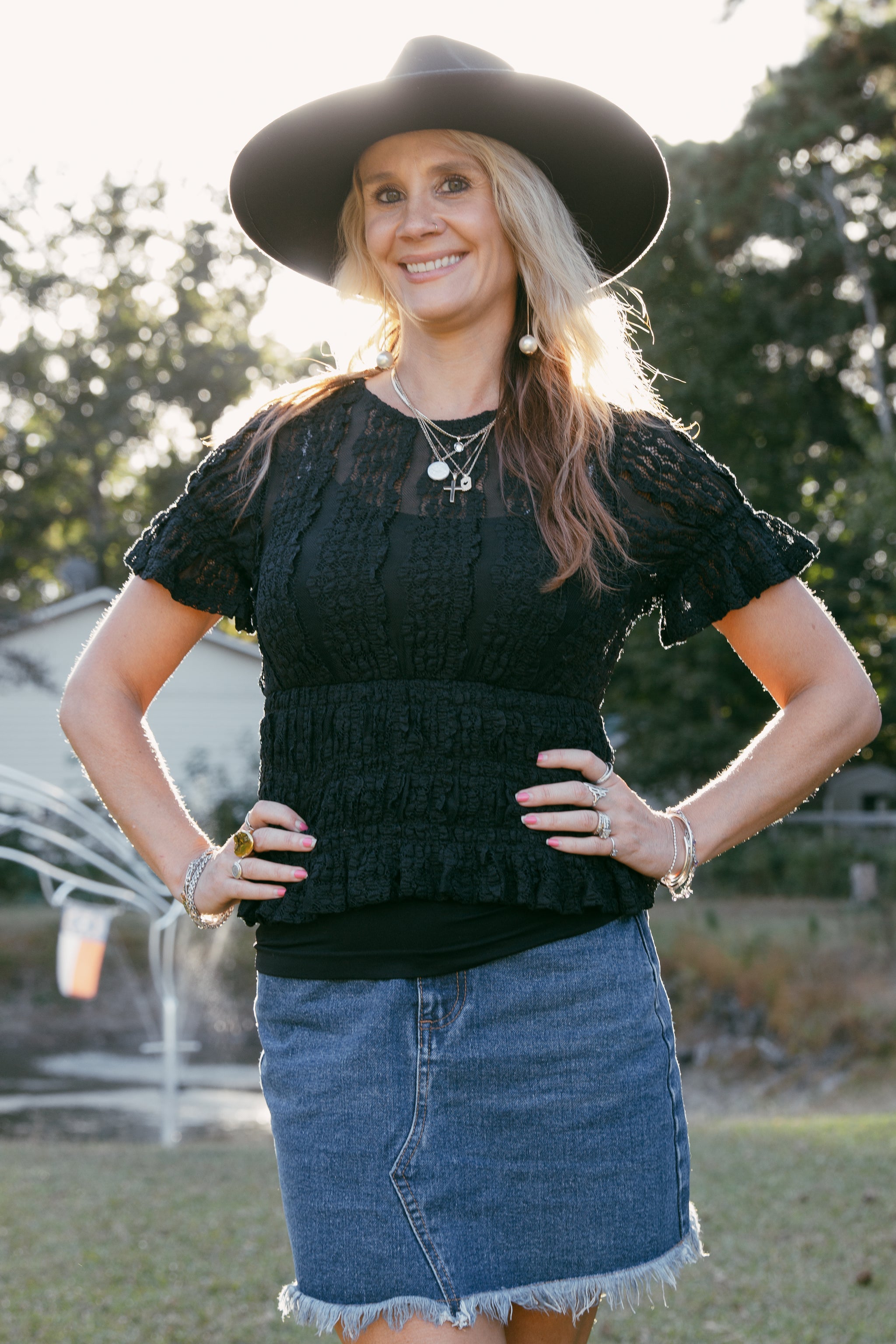 This top is designed with a delicate sheer lace overlay that exudes elegance and sophistication, making it a versatile piece for any wardrobe. The elastic stretch fabric ensures a comfortable and flattering fit, adapting to your body for seamless wear. Short sleeves offer a breezy, lightweight feel, perfect for layering with jackets or cardigans as the seasons change. Ideal for both casual and formal occasions, this top effortlessly elevates your style with its intricate design and timeless charm.
