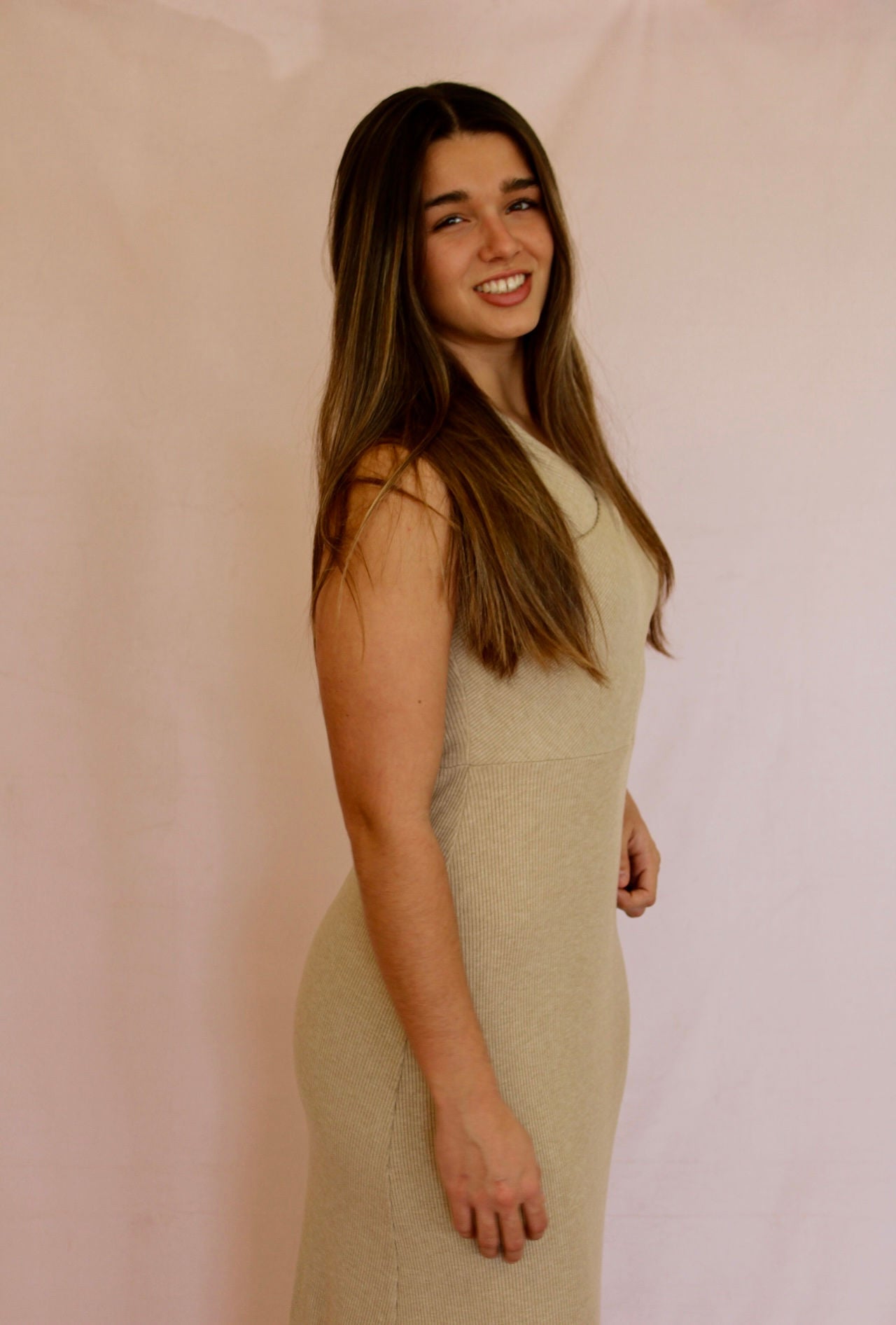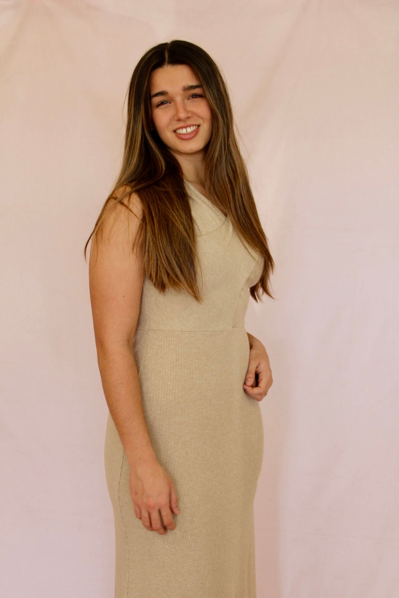 Introducing our Effortless Ribbed Knit Dress, a versatile piece that exudes both comfort and sophistication. Crafted from soft ribbed knit material, this dress offers a gentle embrace, perfect for all-day wear. The subtle taupe color provides a neutral palette, allowing for endless styling possibilities, while the crossing fabric details on the bodice add a touch of elegance and visual intrigue. Whether dressed up with heels and statement jewelry for a night out or paired with flats for a casual daytime look, this dress seamlessly adapts to any occasion.