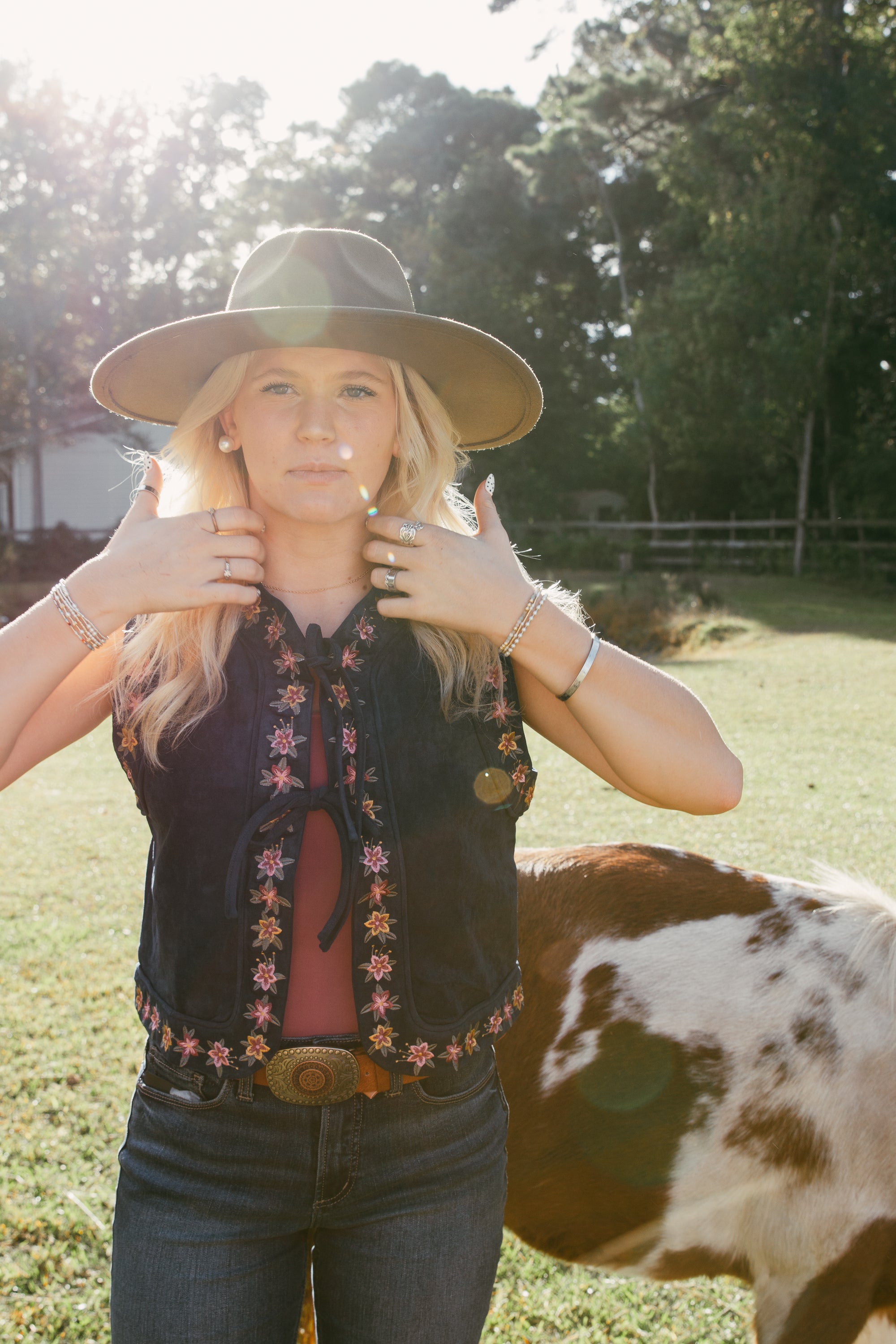 This floral embroidery suede vest is going to be your favorite pick for all your layering needs! Ultra-soft suede shapes this vest that has a round neckline and a slightly boxy bodice that features a double bow tying closure. Floral embroidery along the edges add an extra-stylish finish!