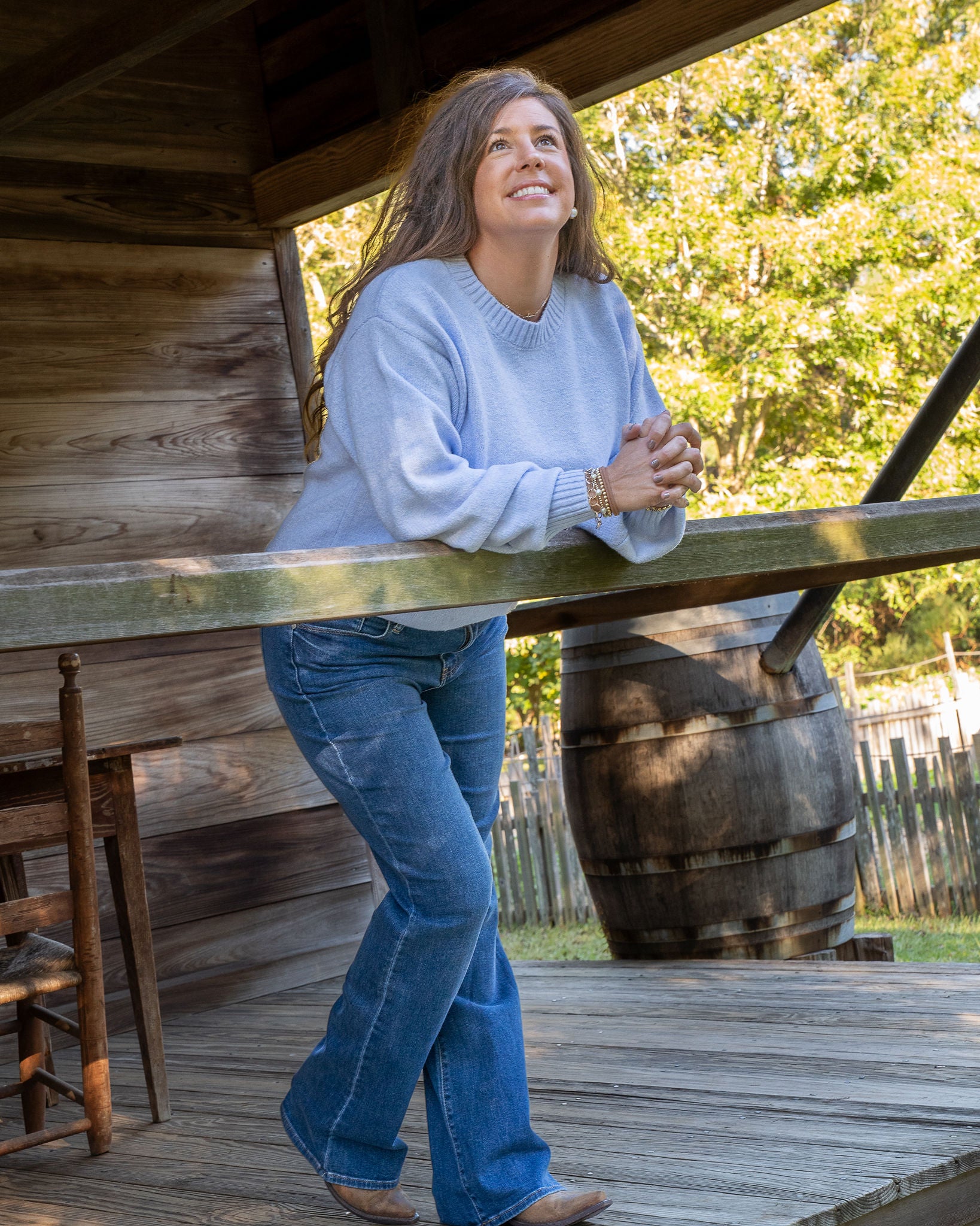 This sweater is crafted from an incredibly super soft knit material that envelops you in a cloud-like embrace, ensuring warmth and comfort throughout the day. Its beautiful blue lavender color adds a serene and calming hue to any ensemble, making it a standout addition to your wardrobe. The classic crew neckline offers a timeless appeal, effortlessly framing the face while enhancing the sweater's cozy vibe. With its oversized fit, this versatile piece is perfect for dressing up with statement jewelry and sleek trousers or dressing down with jeans and sneakers for a casual yet chic look.